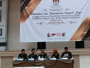 Mereka siap bertugas untuk penyelenggaraan Pemilihan Bupati – Wakil Bupati Sukabumi periode 2020-2025. Pelantikan tersebut di laksanakan di GOR Cisaat dhadiri oleh seluruh komisioner KPU, Bawaslu dan unsur-unsur instantsi lainnya.