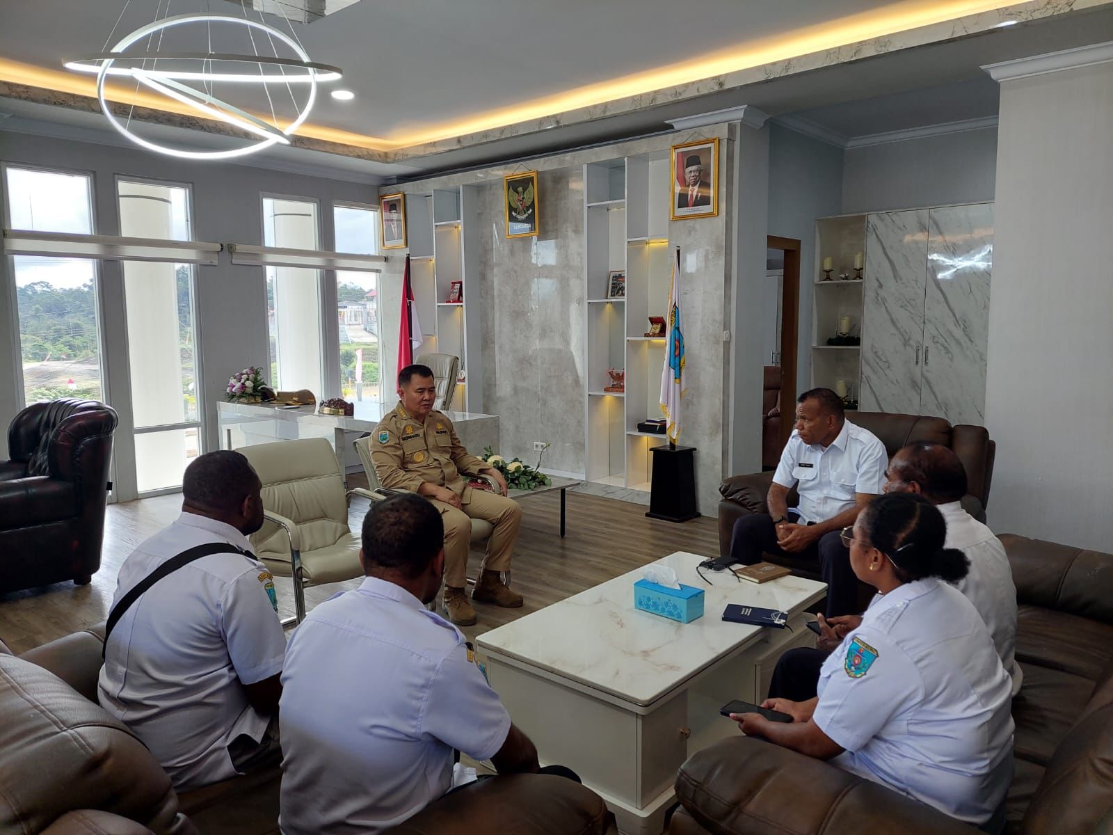 KAPOLID – Pj Bupati Maybrat, Dr. Bernhard E. Rondonuwu, S.Sos., M.Si melakukan rapat bersama Asisten II, dan Dinas Komimfo pada Kamis (10/08/2023).