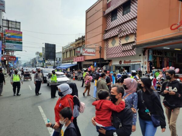 Pantauan KAPOL.ID di ruas jalan tersebut, kepadatan kendaraan seiring peningkatan para pejalan kaki dan parkir roda dua yang berbelanja ke pusat pertokoan.