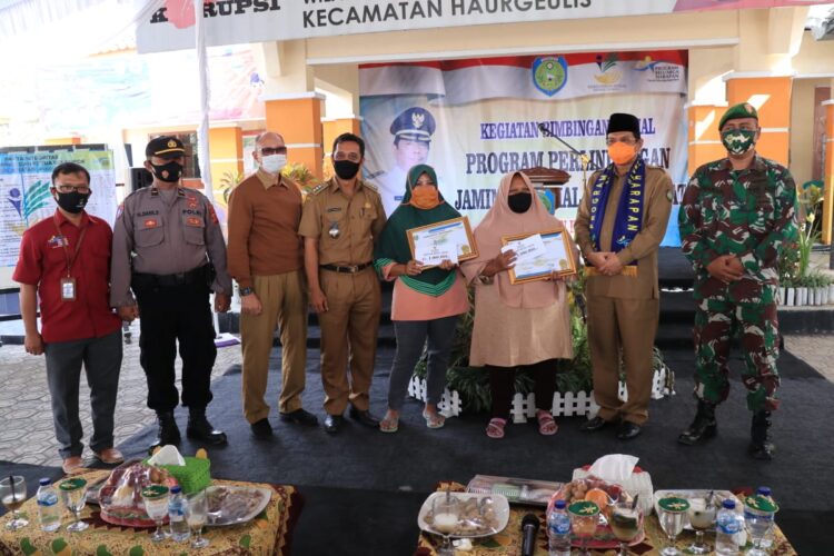 Penandatanganan pakta integritas dipusatkan di Kantor Kecamatan Haurgeulis yang bersamaan dengan kegiatan Bimbingan Program Perlindungan Jaminan Sosial, Senin (07/09/2020).