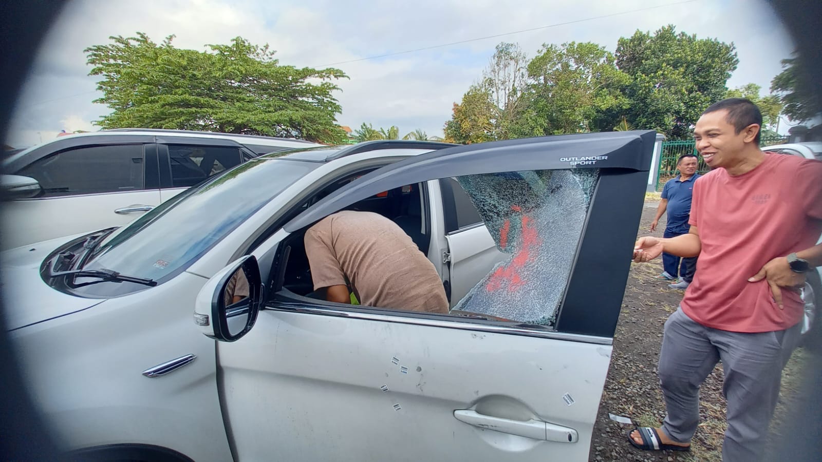 “Saya kaget karena tidak lama masuk ke kafe, ada yang memberi tahu kaca mobil pecah. Lalu mengecek langsung dan benar.”