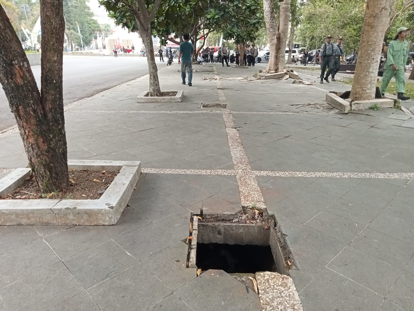 Lubang tersebut berukuran 40 cm x 60 cm dengan kedalaman 1 meter yang berada di trotoar jalan Kompleks Perkantoran Pemkab Tasikmalaya.