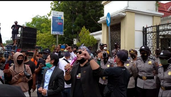 KAPOL.ID – Lembaga Musik Seniman Pantura (L-Musentra) melakukan unjuk rasa di depan kantor Bupati Indramayu Jl. Mayjen Sutoyo No.1E, Lemahabang, Kec. Indramayu, Kabupaten Indramayu, Jumat (11/9).