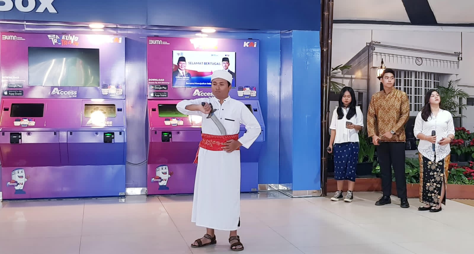 KAI Daop 2 Bandung menghibur penumpang Kereta Api (KA) di Stasiun Bandung dengan menampilkan Monolog berjudul “Monolog Merah Putih” diiringi alunan lagu-lagu kebangsaan yang dibawakan oleh Tim Humasda 2 Bandung.