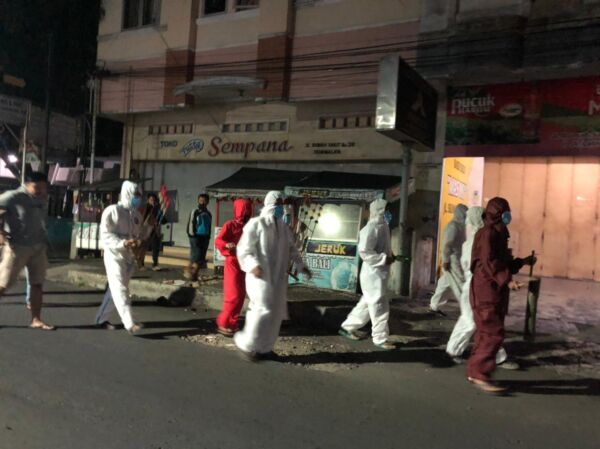Setidaknya ada tujuh orang yang menggunakan pakaian alat pengaman diri (APD) berjalan di Gang Cintarasa tak jauh dari RSU dr. Soekardjo Kota Tasikmalaya, Rabu (21/04/2021).