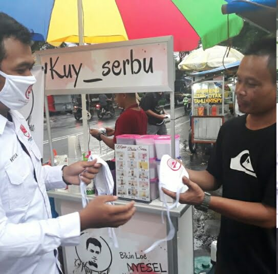 Mereka membagikan 500 bungkus takjil dan 250 masker kepada pengendara motor, pedagang dan masyarakat sekitar.
