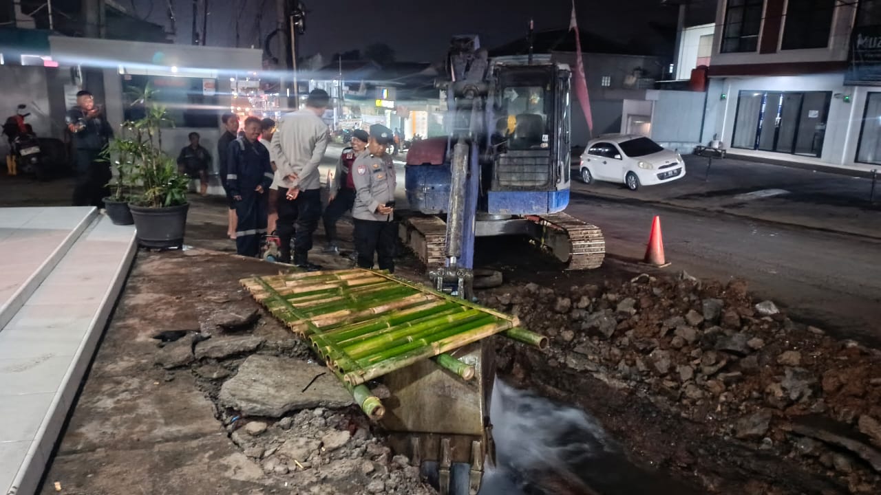 ​”Kami langsung terjunkan anggota untuk pengamanan di lokasi. Airnya cukup besar meluber ke jalan, jadi harus diantisipasi agar tidak ada pengendara yang celaka,” tegas AKP Solihin.