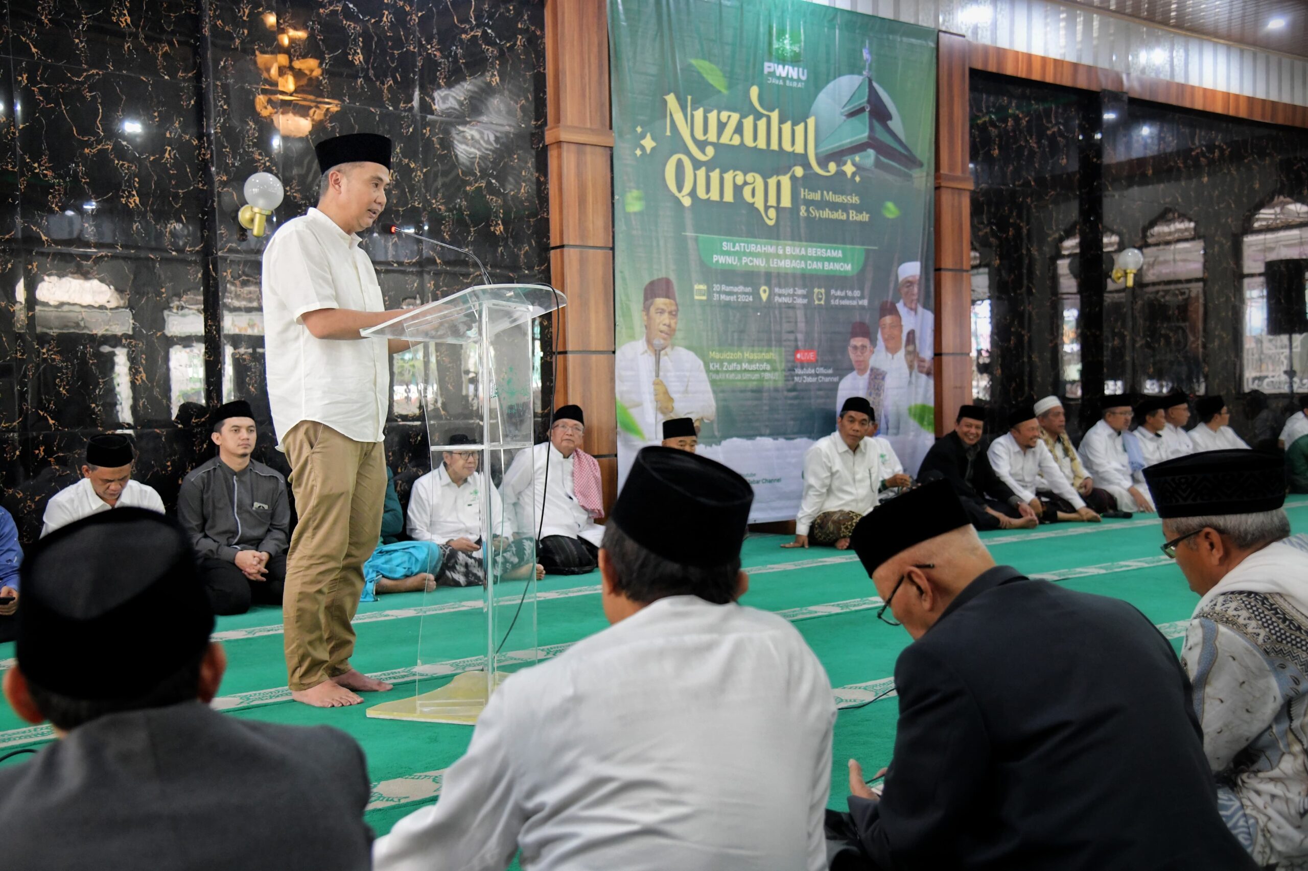 KAPOL.ID – Pengurus Wilayah Nahdlatul Ulama (PWNU), Pengurus Cabang, Lembaga dan Badan Otonom (Banom) NU se-Jawa Barat bersaturahmi dengan Penjabat Gubernur Jawa Barat Bey Machmudin di Masjid Jami’ PWNU Jabar, Kota Bandung, Minggu (31/3/2024).