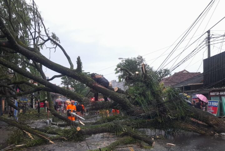 Tak hanya menimpa bangunan, beberapa pohon bahkan memutus arus lalulintas beberapa ruas jalan.