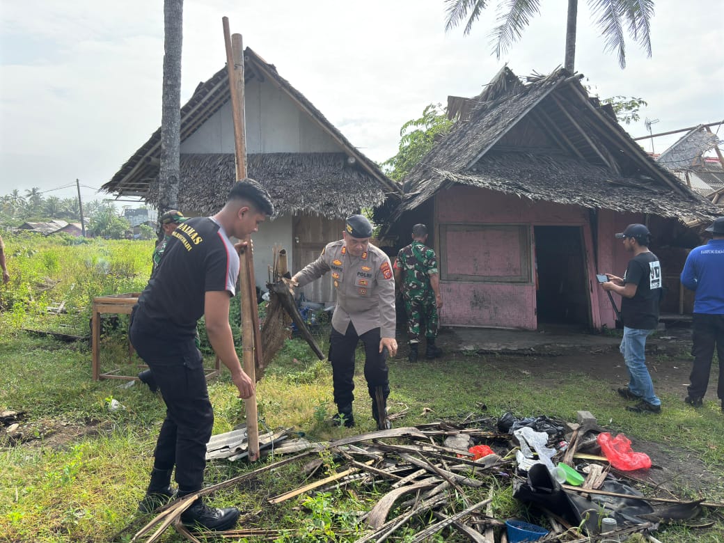 KAPOL.ID – Pasca bencana angin puting beliung yang terjadi di wilayah Pantai Barat Pangandaran, Blok Pamugaran, Desa Wonoharjo, Kecamatan Pangandaran, Polres Pangandaran bersama Kodim 0625 Pangandaran pada hari ini, Minggu (22/12), melakukan relokasi dan pemulihan area terdampak. Kegiatan ini dipimpin langsung oleh Kasat Samapta Polres Pangandaran, AKP Wahyu Hidayat, S.H., dengan bantuan personel gabungan dari TNI-Polri.