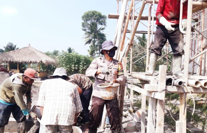 Bahkan, Bhabinkamtibmas dan Babinsa setempat ikut membantu kegiatan pengecoran itu, Jumat (1/04/2022).