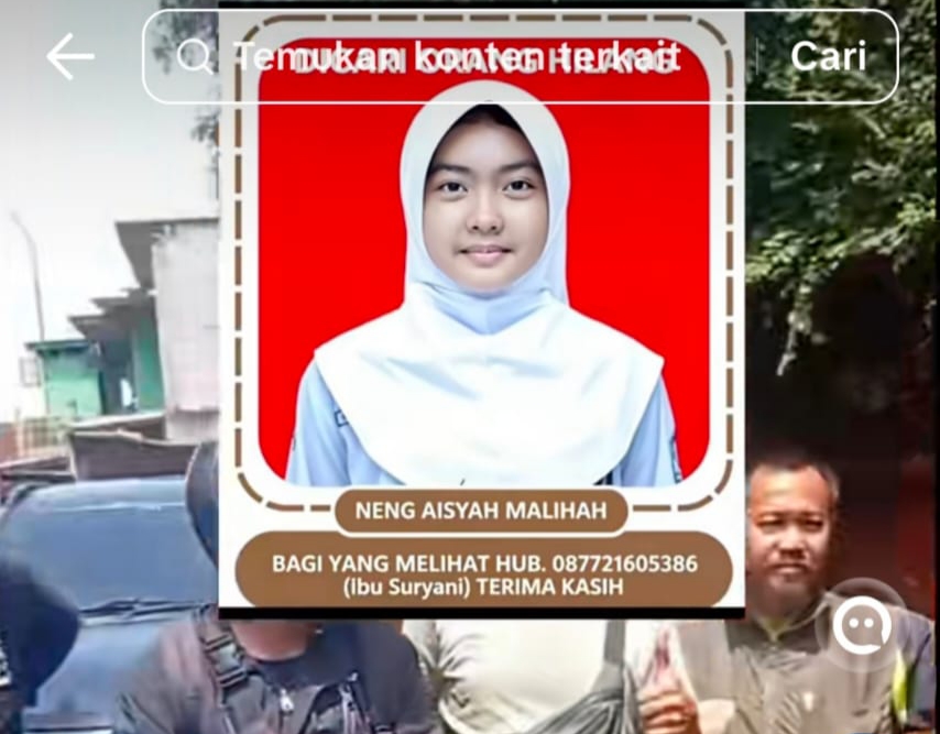 Identitas Korban: Neng Aisyah Malihah (Status: Ditemukan/Dalam penanganan).