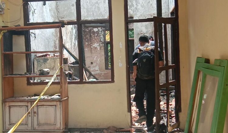“Terbakarlah ruangan tersebut dan merembet ke ruangan lainnya. Tangan kanan pelaku sempat terbakar saat melempar buku yang dibakar dari luar ruangan,” kata Doni.