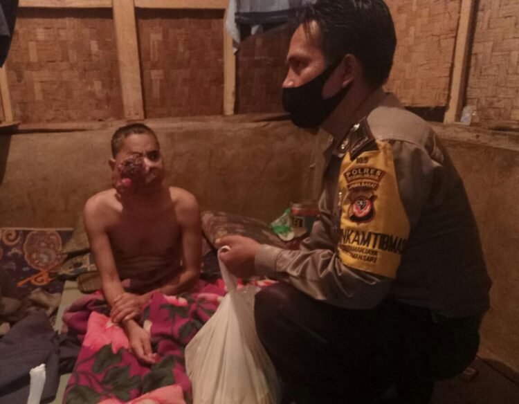 Dapati ada informasi salah satu warga Tamansari Kota Tasikmalaya butuh uluran tangan karena sakit kanker mata, direspon cepat Kapolsek Tamansari.