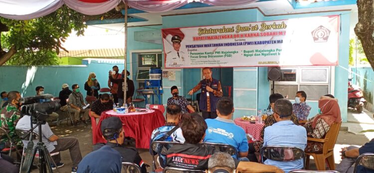 “Media massa yang memiliki peran strategis bukan hanya memberitakan terkait data dan fakta terkait Covid-19 mengenai kasus positif, tapi yang sembuhnya perlu diinformasikan ke publik,” kata Bupati Majalengka H Karna Sobahi saat menjadi narasumber pada kegiatan yang digelar di Sekretariat Persatuan Wartawan Indonesia (PWI) Kabupaten Majalengka, Jum’at (25/9/2020).