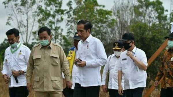 Presiden Joko Widodo (Jokowi) didampingi Menteri Pertahanan Prabowo Subianto bersama rombongan meninjau Food Estate di Kapuas, Kalteng, Kamis (9/7/2020). [Foto: kanalkalimantan.com]