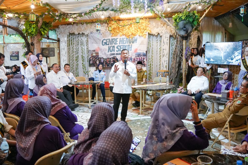 Keseruan goyang Stecu-stecu berlangsung sesaat setelah Wihaji berdialog dengan puluhan lansia dan pegiat Genre di salah satu resto di pusat kota Majalengka pada Senin sore, 21 April 2025.