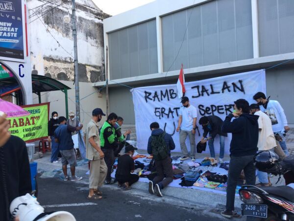 Komunitas Rambu Jalan kali ini dirikan pasar gratis di Jalan Dokter Soekardjo Kota Tasikmalaya.