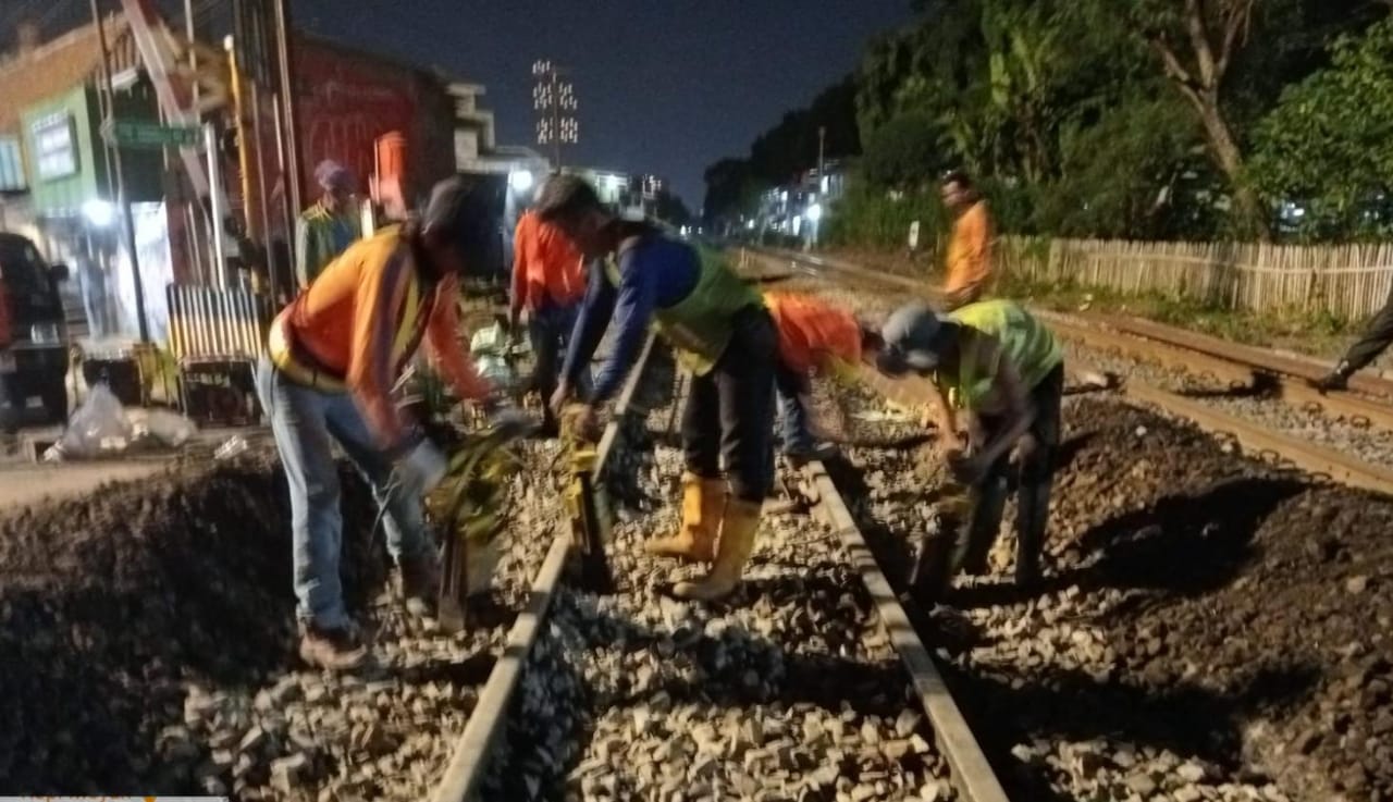 PT KAI Daop 2 Bandung Perbaiki Rel di Perlintasan Jalan Ahmad Yani Cikudapteuh