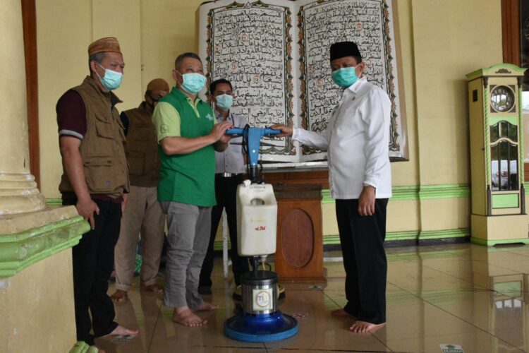 KAPOL.ID – PT. Mandiri Jaya Makmur (MJM) memberikan bantuan sarana kebersihan berupa cairan kimia pembersih dan equalizer kepada Masjid Agung Sumedang.
