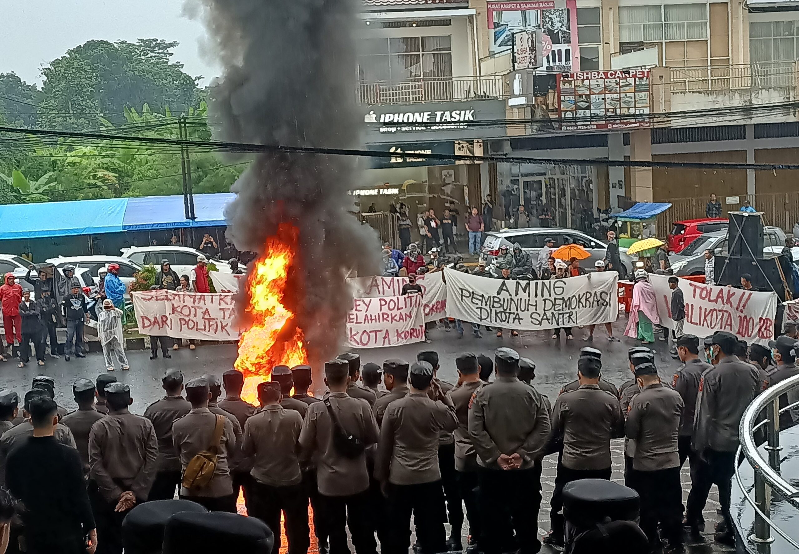 “Atas dasar tersebut, siapapun yang menang hari ini kami menolak hasil pilkada Kota Tasikmalaya,” teriak orator lainnya.