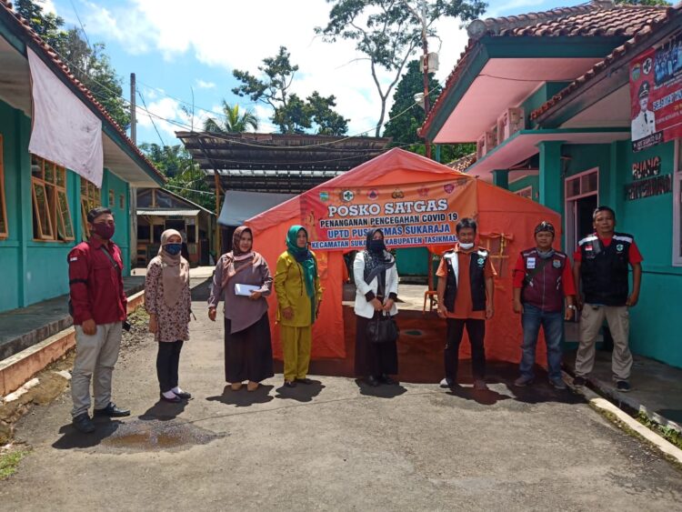 Ratna Dewi mengecek perkembangan informasi dan penanganan Covid-19 di wilayah Puskesmas Kecamatan Sukaraja.