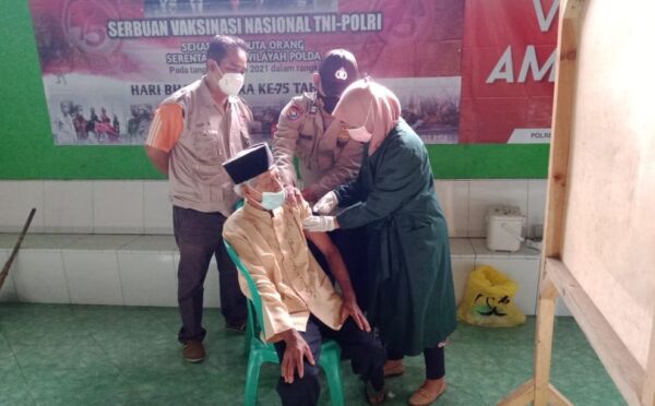Kegiatan vaksinasi gratis tersebut dilakukan dalam rangka Hari Ulang Tahun Bhayangkara ke 75 di wilayah Polsek Taraju.