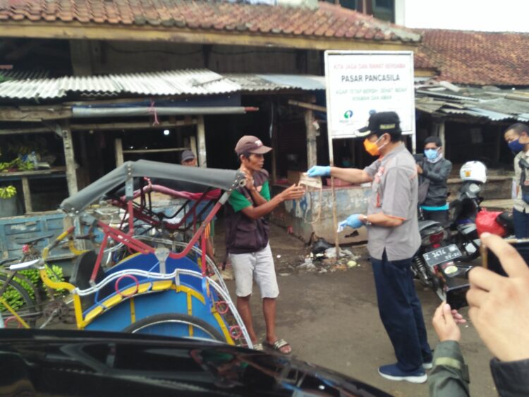 Kedua pucuk pimpinan Pemkot Tasikmalaya beserta jajaran bagi tugas keliling pasar tradisional, Sabtu (11/4/2020).