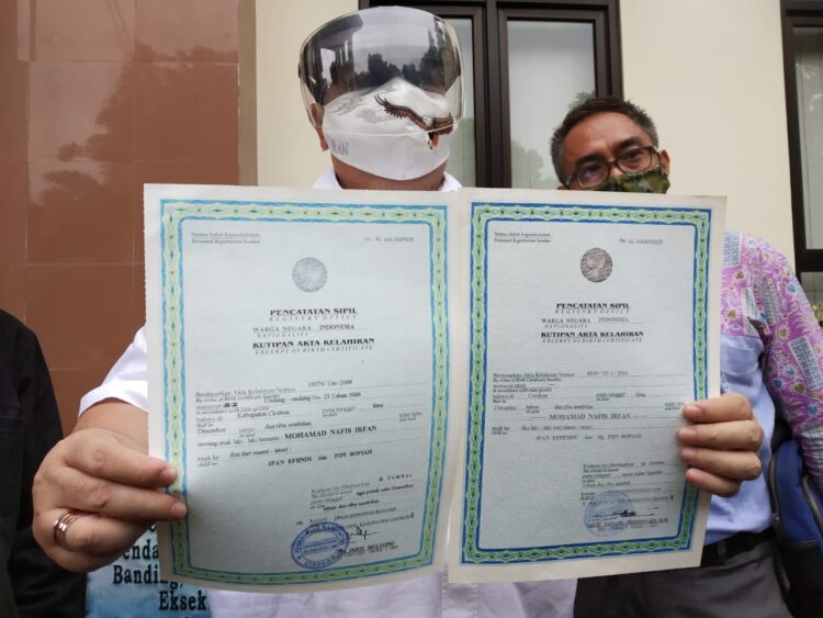 “Kami heran kok bisa terbit 2 akta lahir atas nama Mohamad Nafis Irfan anak kedua, parahnya lagi 2 akta lahir yang sama tapi beda penulisan nama IE, ini kuat dugaan ada rekayasa dalam penerbitan akta lahir, dan yang jadi pertanyan lagi, kemana anak ke satu kalau emang ada, ini langsung aja anak ke dua,” sambungnya