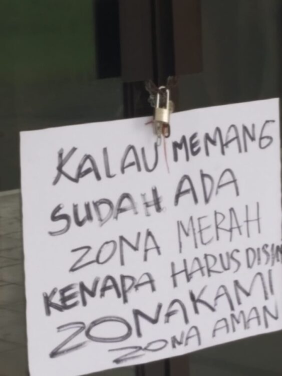 Beberapa poster bernada keberatan dipasangi warga di lokasi. “Pa Wali tolong lindungi kami yang dalam kondisi aman dan tolong kami jangan sampe ada korban baru.” (Abdul Salam)***
