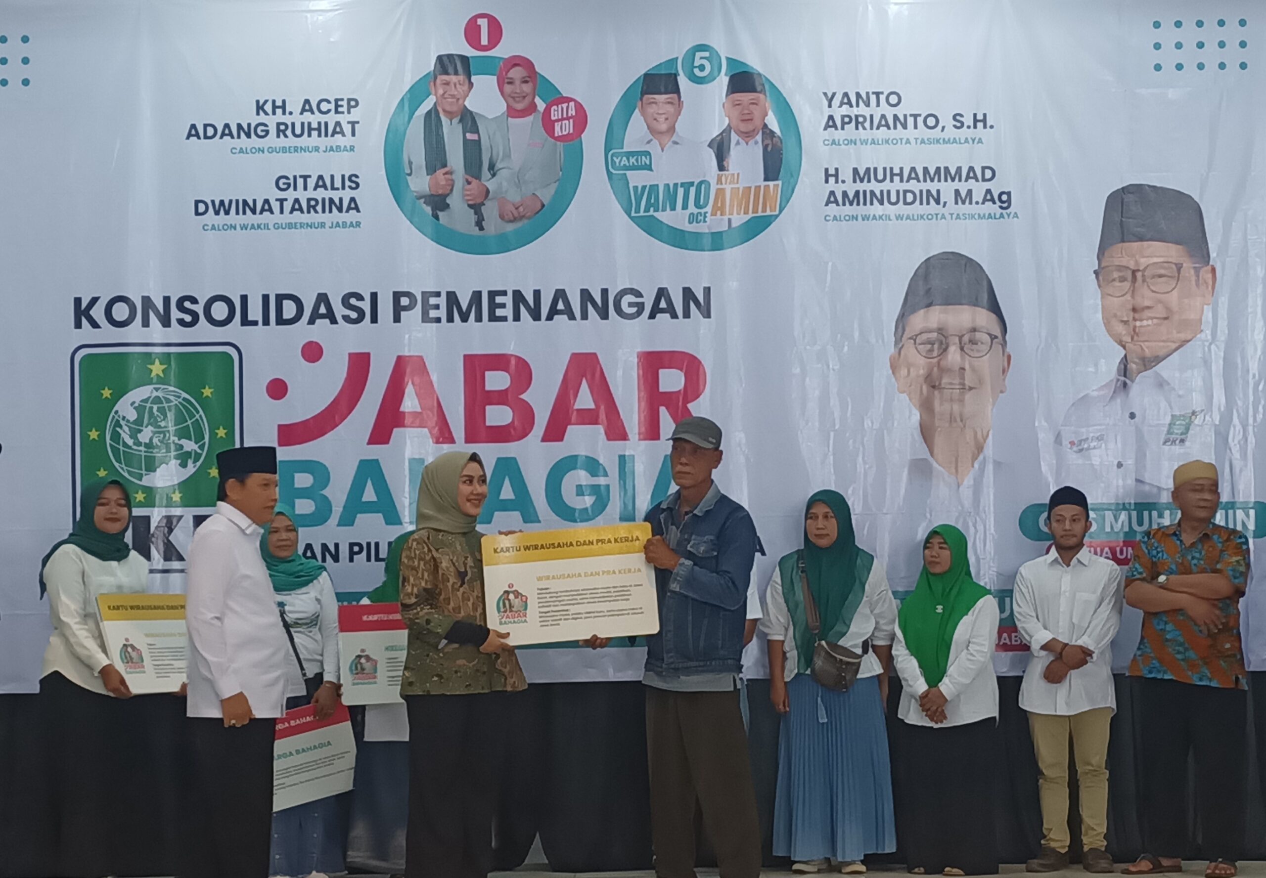 Sementara itu, saat konsolidasi Cagub Jabar Acep Adang Ruhiat dan Gita KDI memperkenalkan kartu sakti ‘Jabar Bahagia’.