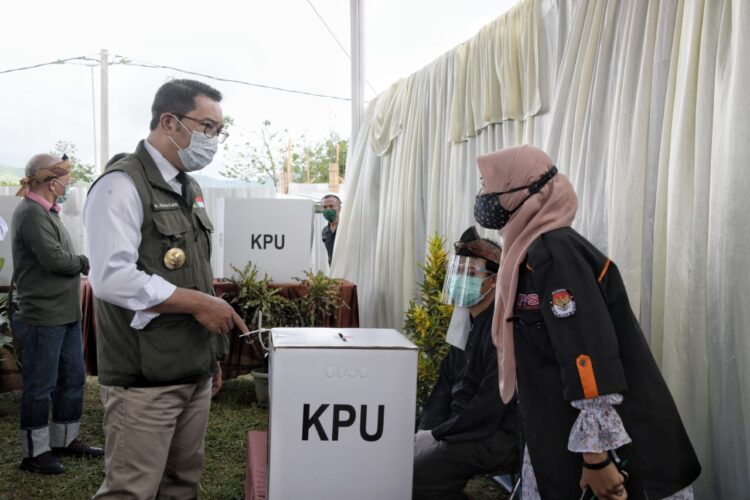 KAPOL.ID – Gubernur Jawa Barat Ridwan Kamil meninjau pemungutan suara Pilkada Serentak di Kabupaten Bandung, Rabu (9/12/20). Apresiasi penuh karena pencoblosan berlangsung dengan menerapkan protokol kesehatan COVID-19.