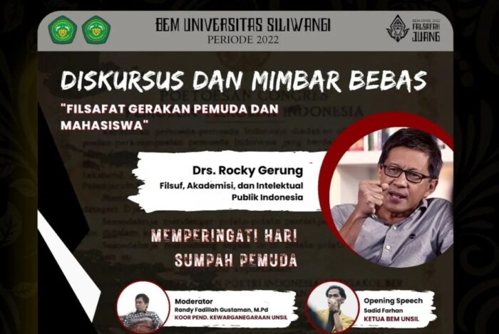 Dalam akun instagram @bemunsil Tasikmalaya, Rocky akan menjadi narasumber pada Diskursus dan Mimbar Bebas.