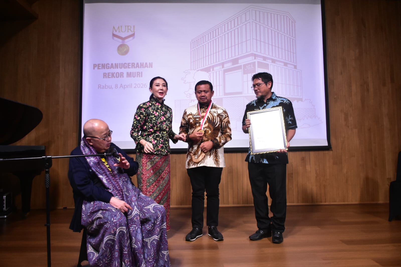 Penghargaan tersebut diserahkan langsung oleh Presiden Direktur MURI, Jaya Suprana, didampingi Direktur MURI, Ailawati Margono, kepada Bupati Sumedang H. Dony Ahmad Munir dan Direktur RSUD Umar Wirahadikusumah Enceng di Audithorium Kinartosabdo MURI Jakarta, Rabu (8/4/2026).