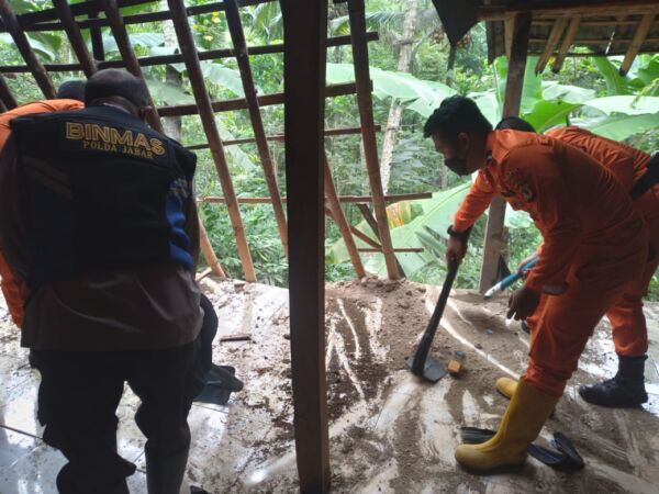 Informasi yang dihimpun KAPOL.ID, terdapat dua titik tanah longsor. Satu mengusur dapur, lalu jembatan Cibeuti terancam amblas.