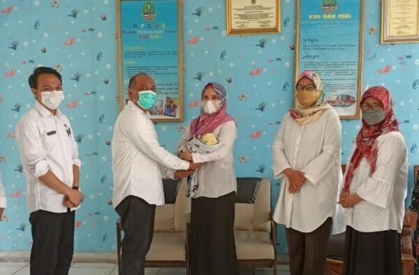 Penyerahan bayi temuan dari Dinas Sosial Pemberdayaan Masyarakat Desa Kabupaten Pangandaran kepada PSPA.