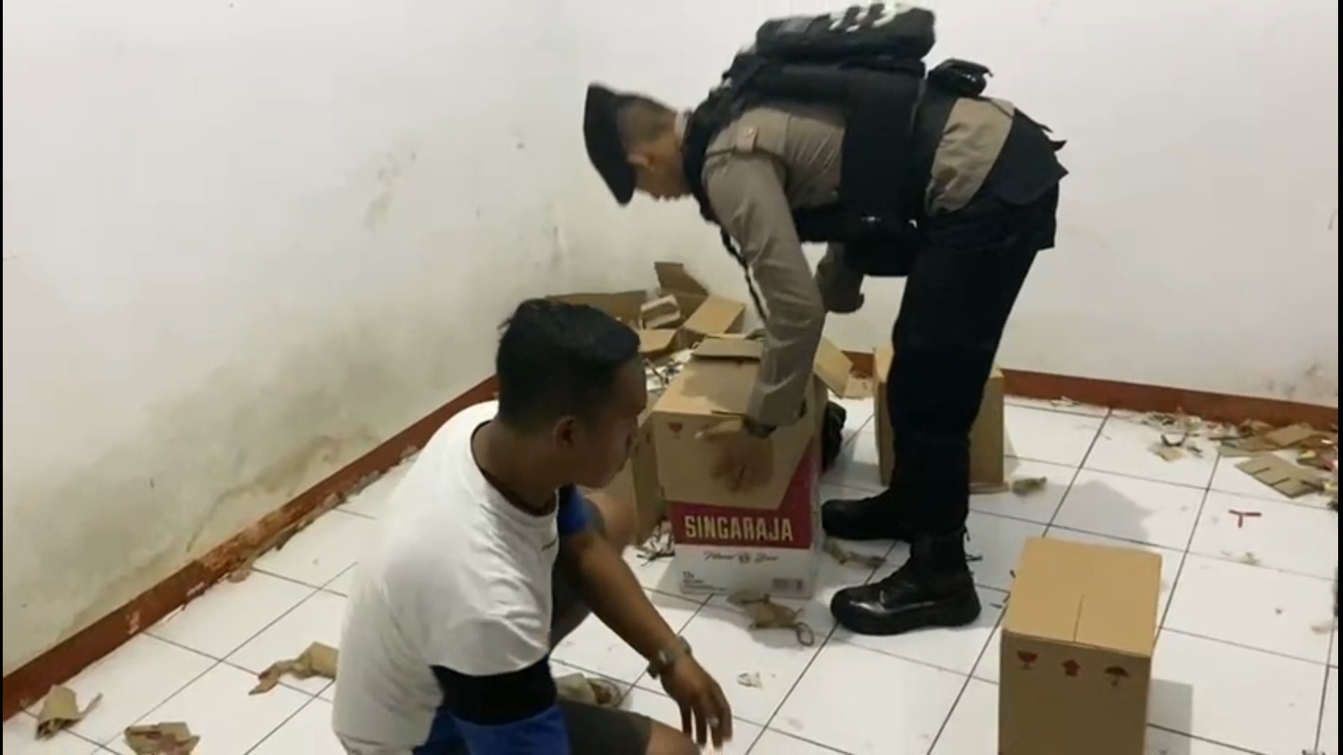 Rumah kontrakan tersebut diduga menjadi tempat penyimpanan berbagai jenis minuman keras (miras).