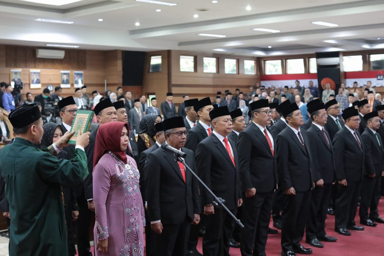 “Jadi ada 44 yang mengikuti proses pelantikan. Untuk pengganti almarhum (dr Wahyu) masih dalam proses,” ucap Sekretaris DPRD, Kota Tasikmalaya, Rojab Riswan.