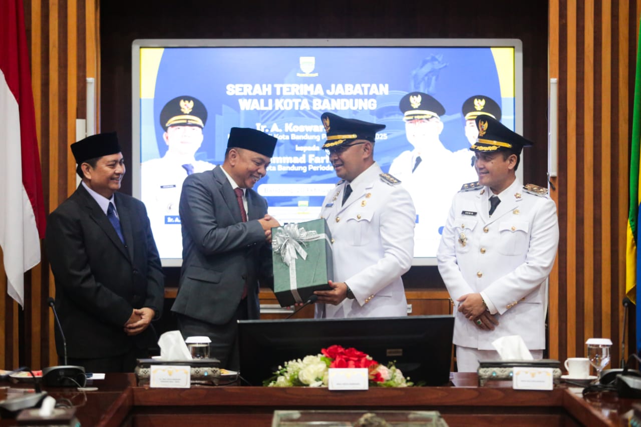 Usai pelantikan, Wali Kota dan Wakil Wali Kota Bandung langsung melaksanakan serah terima jabatan, di Balai Kota Bandung.