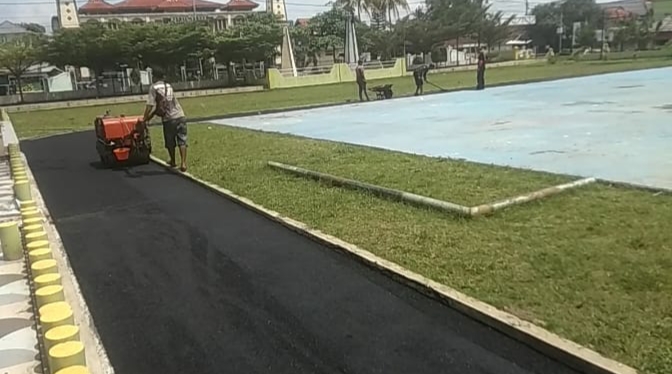 Tidak hanya jalan gang di lingkungan warga saja, tetapi disekeliling lapang kegiatan anak dan remaja yang lokasinya di Alun-alun pun ikut di hotmik.