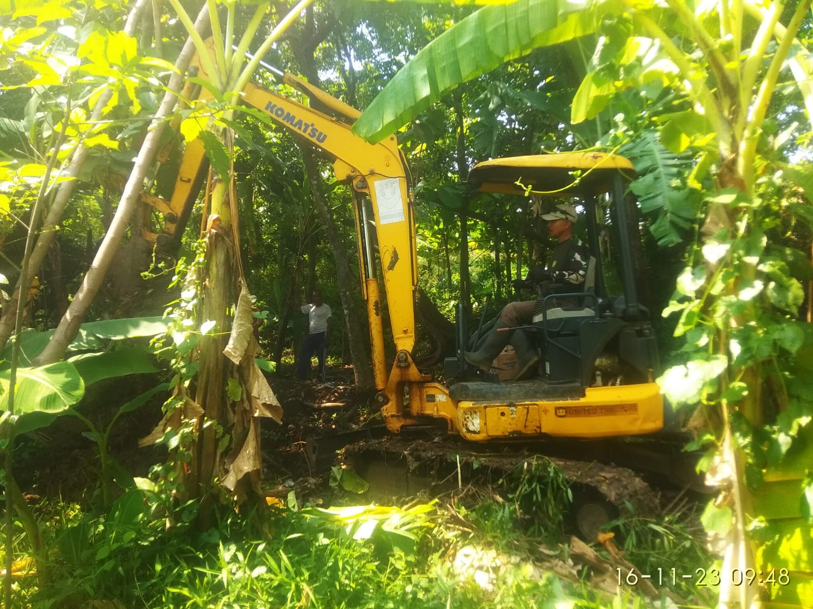 “Membangun saluran air itu tidak cukup pakai tenaga warga tapi pakai alat berat (Beko). Yang alhamdulillah sekarang sedang beroperasi dilokasi,” terangnya.