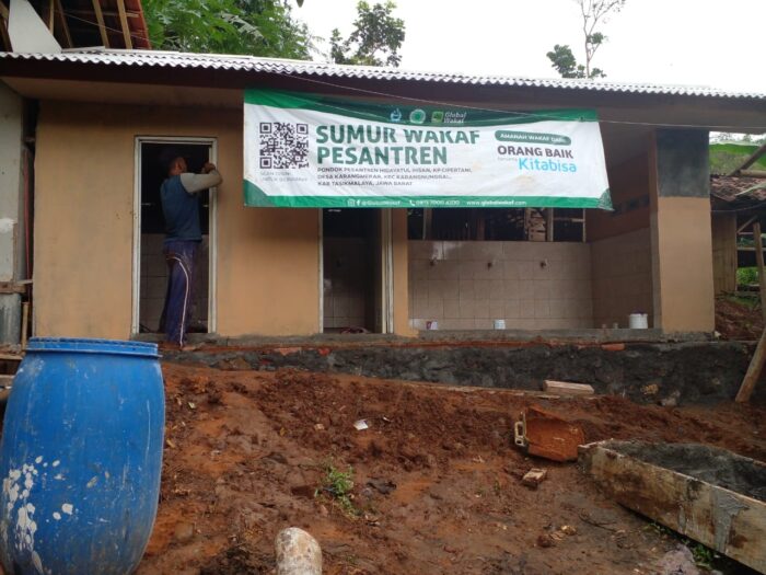 Tim Global Wakaf-ACT Tasikmalaya membangun sumber air berupa sumur wakaf beserta MCK dan tempat wudhu.