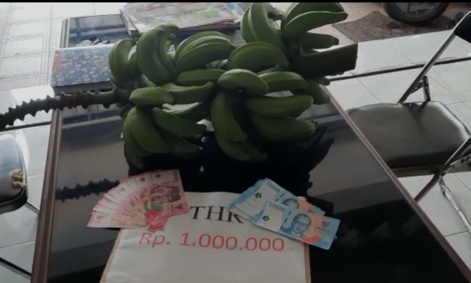 Kantor BNN Kota Tasikmalaya dikirimi aktivis setandan pisang dan uang mainan imbas surat minta THR ke PO Budiman, Rabu (12/4/2023).*