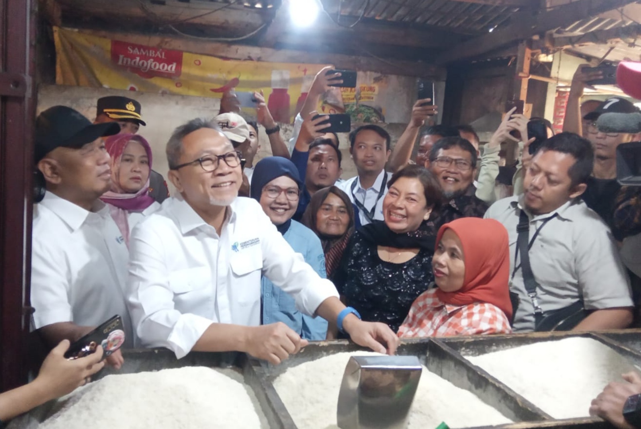 Menteri Perdagangan Zulkifli Hasan melakukan pemantauan stabilitas harga dan pasokan kebutuhan pokok masyarakat (Kepokmas), di Pasar Tanjungsari Kabupaten Sumedang. *