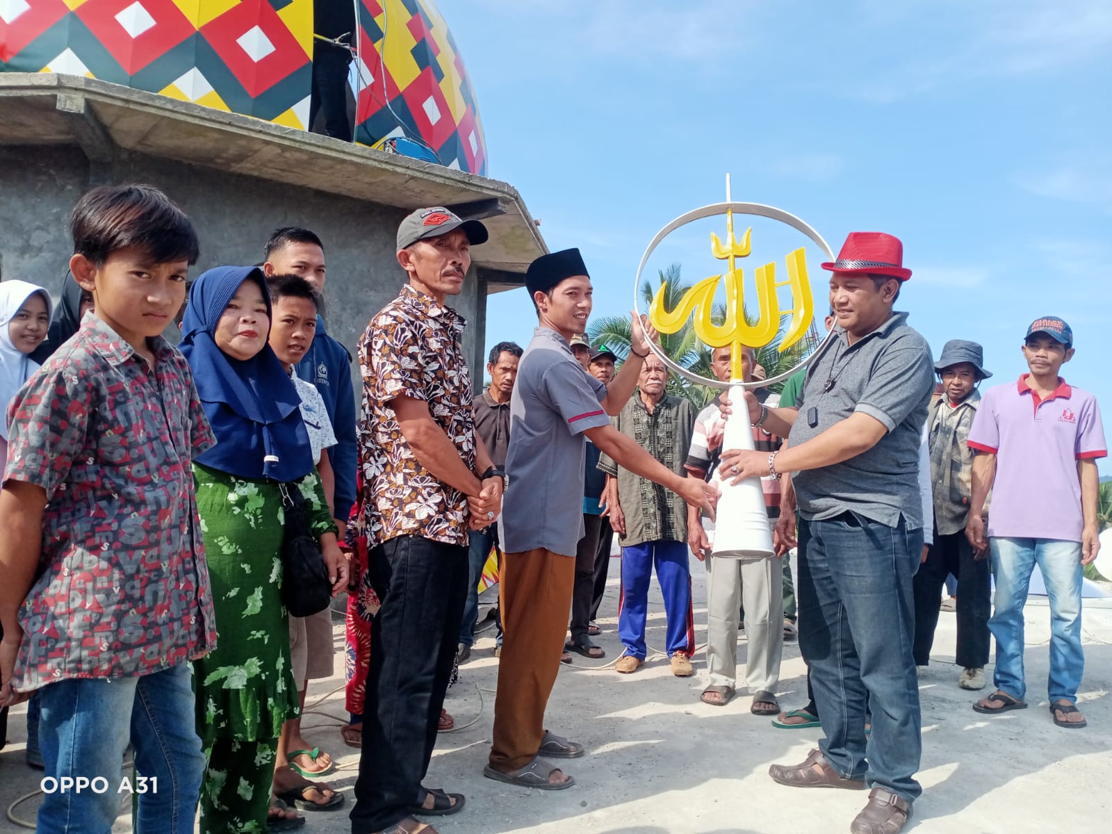 Bantuan Kubah Masjid, diterima secara langsung DKM sekaligus panitia pembangunan Masjid Al-Ishlah Ust. Muhtar Gozali, didampingi Kepala Desa Mulyasari Dudung Suryana dan disaksikan tokoh dan masyarakat sekitar.
