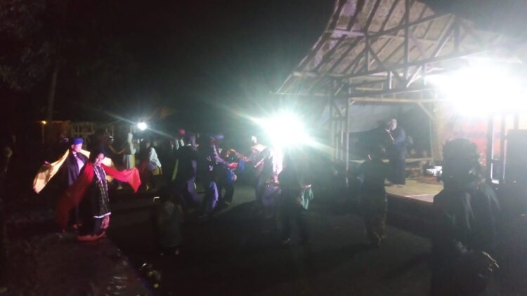 Sekelompok penari asyik bercampur-baur menari ala Tayuban, saat acara gelar seni budaya yang bertajuk “Dangdos Papayoeng Agoeng Soekapura” (DPAS) di lokasi Citiis, Galunggung, Desa/Kecamatan Padakembang, Kabupaten Tasikmalaya, Sabtu (7/3/2020).