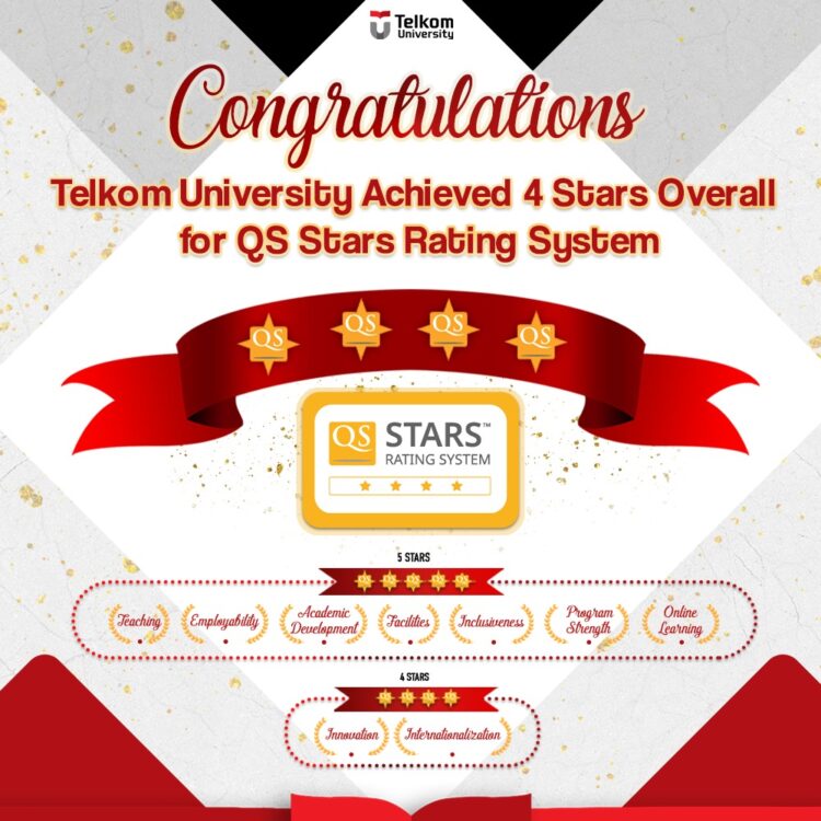 Dalam penilaiannya, Telkom University berhasil meraih Bintang Lima (5 Stars) yang melingkupi bidang Pengajaran (teaching), Employability, Academic Development, Facilities, Inclusiveness, Program Strength : Bachelor of Informatics dan Online Learning.