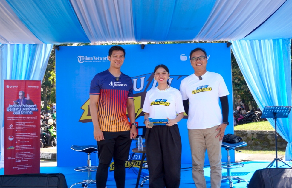 Di Bandung, kampanye ‘Judi Pasti Rugi’ hadir di Arcamanik Sport Center, Minggu (20/7) menghadirkan olahraga pagi, mobil edukasi bahaya judi online, fasilitas konseling, serta sesi edukasi untuk mencegah jerat judi online.