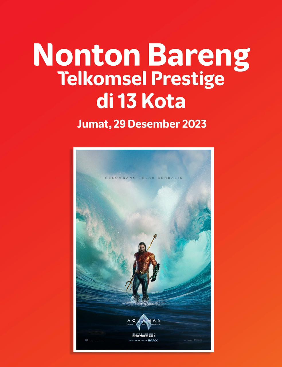 Dengan menukarkan 20 Telkomsel Poin atau 200 IndiHome Poin yang dimiliki, Pelanggan Telkomsel Prestige telah mengikuti keseruan nonton bareng Aquaman serentak di 12 kota.