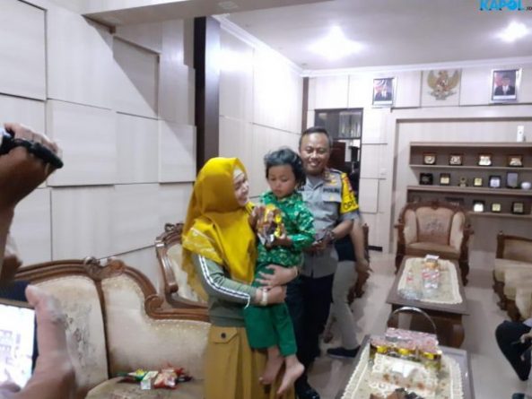 Foto : Bocah korban penculikan saat di ruang Kapolres Tasikmalaya Kota, setelah ditemukan di kawasan Panglayungan Kota Tasikmalaya.